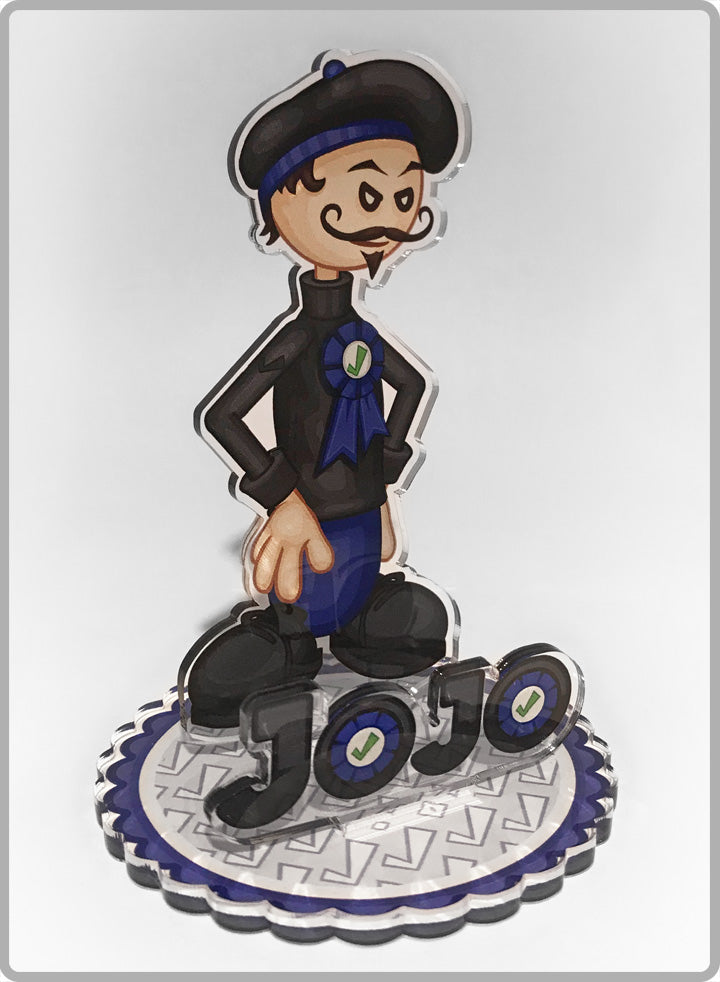 This 2.5D figurine of Jojo stands at 4.25 inches tall and is made of crystal-clear, laser-cut acrylic.